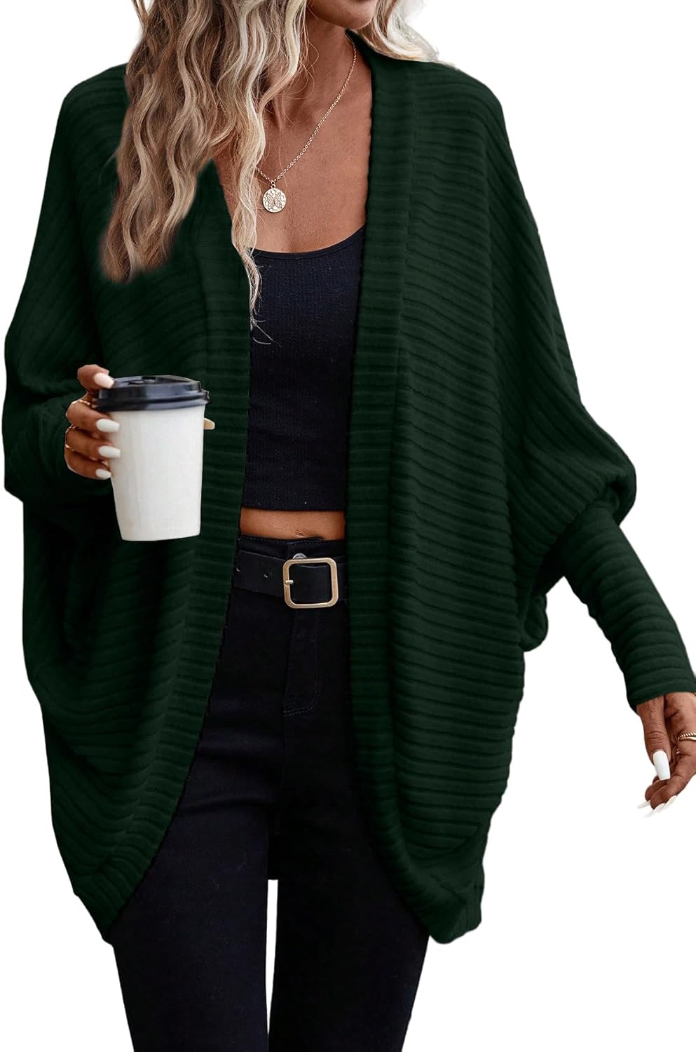 Womens Oversized Slouchy Cardigan Sweaters Warm Cozy Waffle Knit Open Front Boho Batwing Trendy Cardigan for Women 2025 Fall