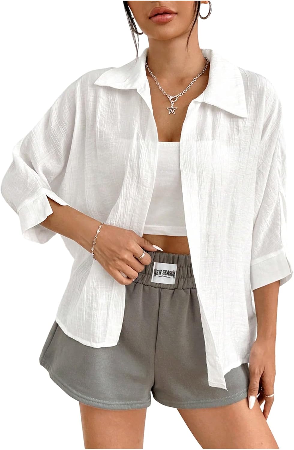 SHENHE Women's Summer 3/4 Sleeve Open Front Loose Fit Kimono Shirt Dolman Top Blouse