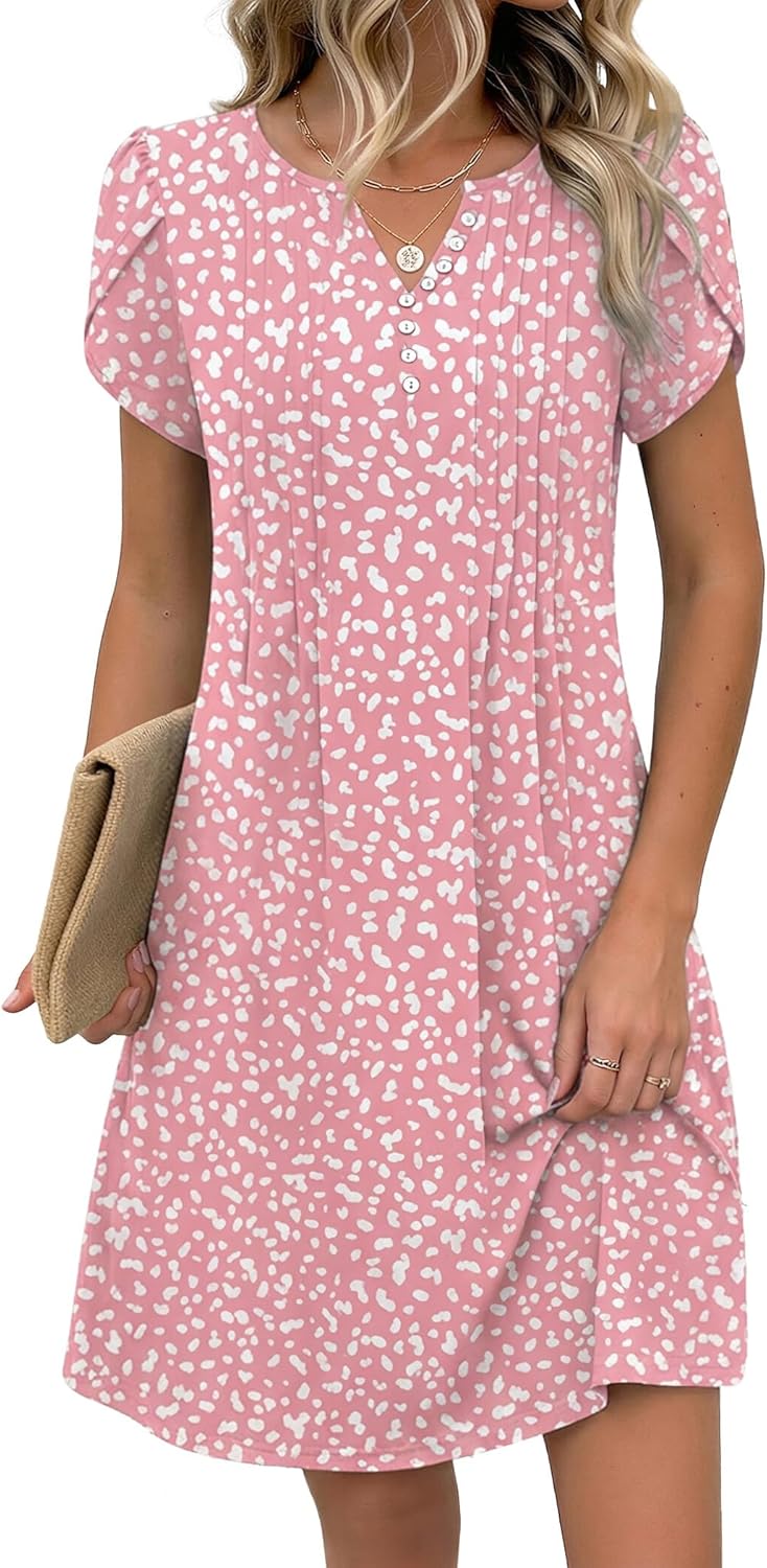 Zeagoo Women's Casual Dresses with Pockets Summer Floral V-Neck A-Line Tshirt Dress Short Sleeve Mini Dress Beach Sundress