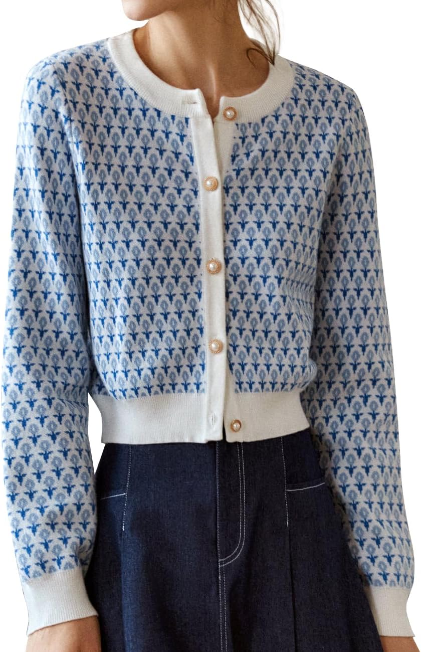Women's Cropped Cardigan Sweater, Round Neck Pearl Button Long Sleeve 2025 Autumn Trendy Sweater Top
