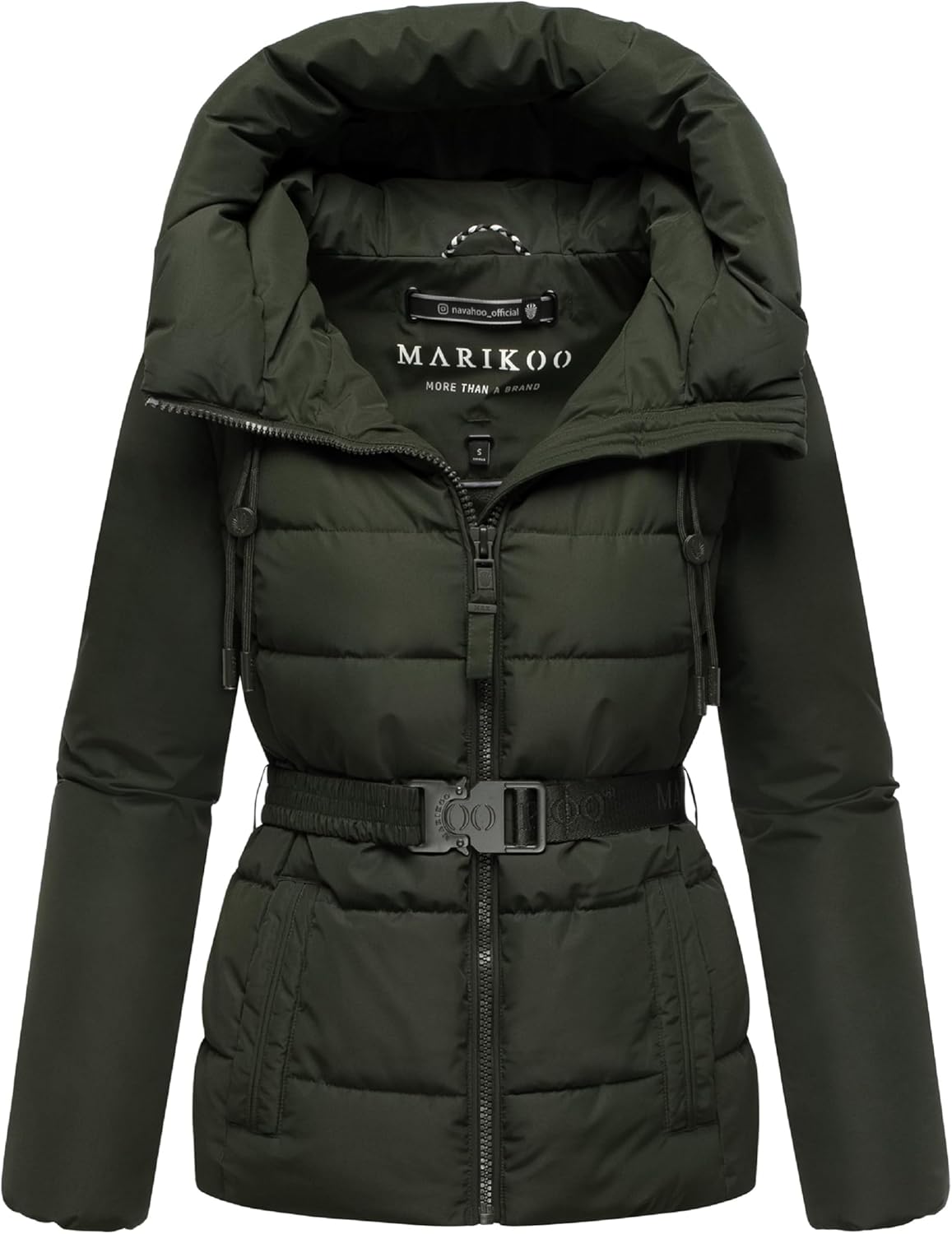 Marikoo Women’s Belted Puffer Jacket with Hood - Quilted Short Coat - Water-Repellent - Himee 16 S-3XL