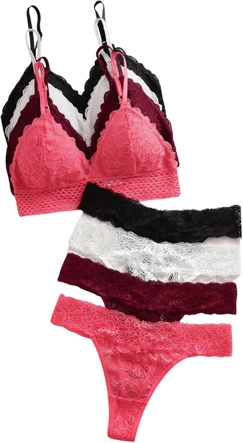 GORGLITTER Women's 8 Piece Sexy Lace Lingerie Matching Bralette Bra and Panty Set