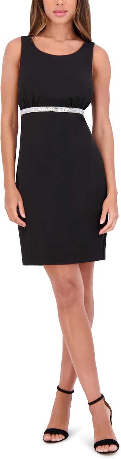kensie Womens Sleeveless Rhinestone Belted Mini Dress
