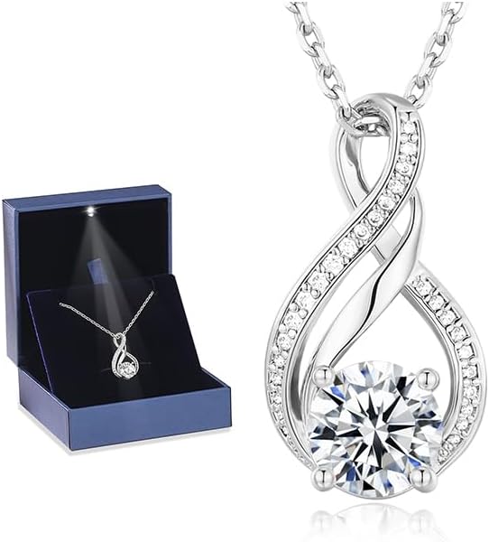 KRZ Infinity Moissanite Necklace for Girlfriend, Anniversary Birthday Present for Wife Women Her, Jewelry Gifts for Christmas Valentines Mothers Day