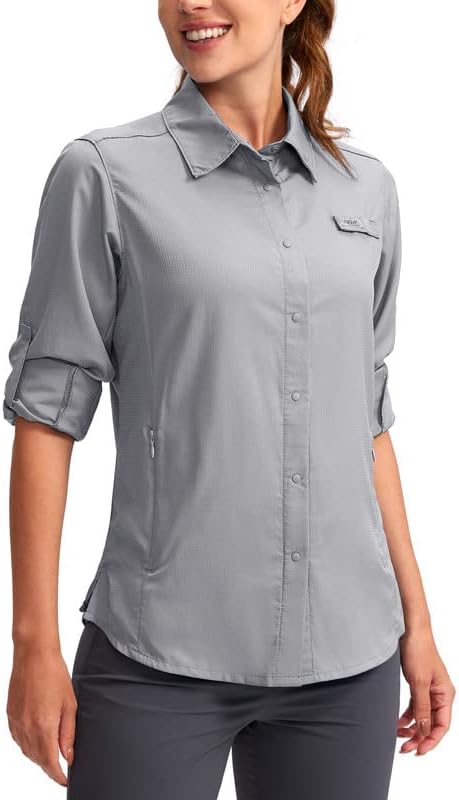 Womens Sun Protection Fishing Shirt with Zipper Pockets Lightweight SPF Long Sleeve Shirts for Hiking Safari