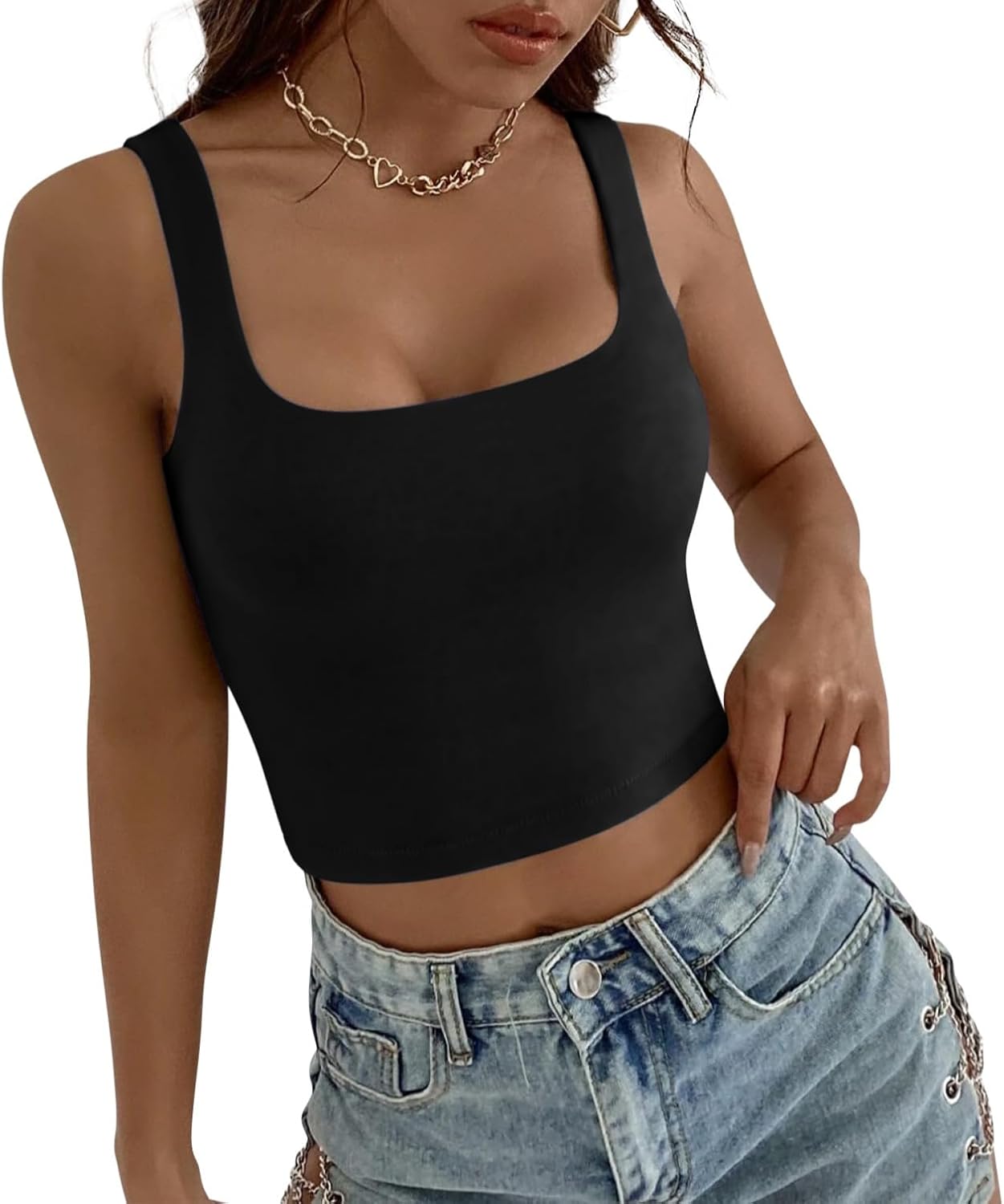 Sweet Hearts Crop Top for Women- Sleeveless Double Layer Square Neck Tank Workout Fitness Casual Basic Tank Top Made in USA