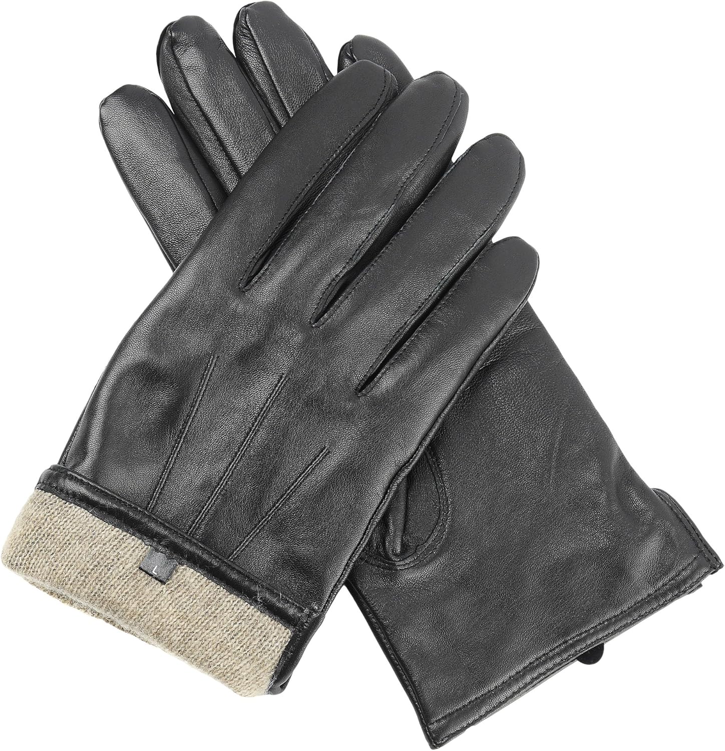 Men's Premium Sheepskin Cashmere Lined Leather Gloves (MCA-BK-L)