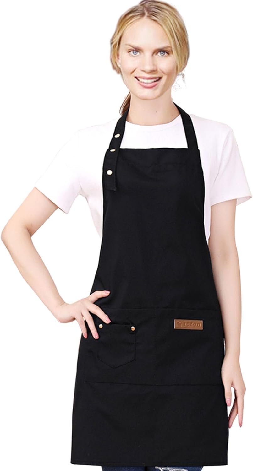 Kitchen Cooking Apron for Women Men with Big Pockets Canvas Waterproof Aprons for Server Pottery Artist Chef Apron