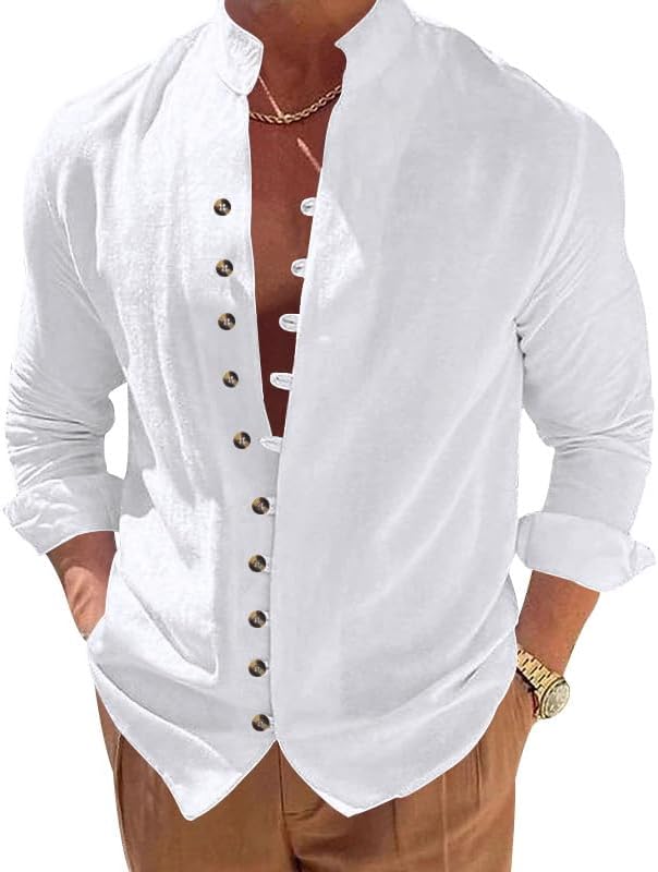 Mens Long Sleeve Stand Collar Shirt Lightweight Polyester Casual Button Design Daily Wear Top