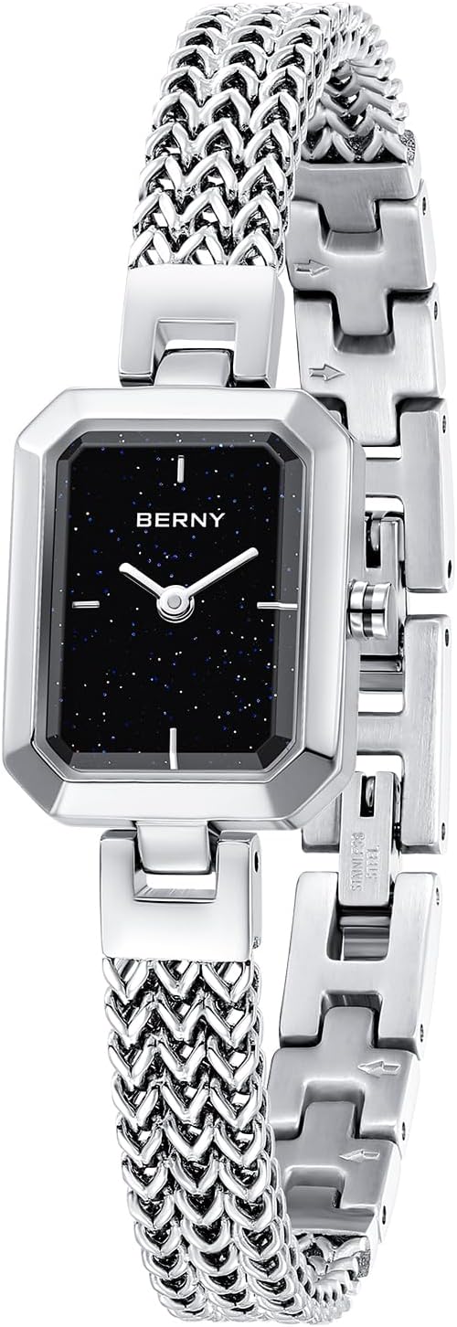 BERNY Silver Watches for Women Easy Resize Ladies Bracelet Watch All Stainless Steel Luxury Fashion Small Square Wristwatch Waterproof Detachable Band