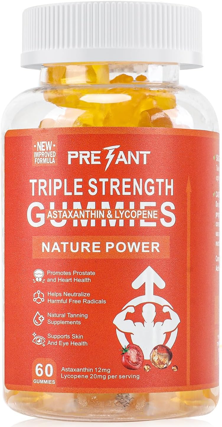 PRETANT- Prostate Health Supplements for Men, Astaxanthin + Lycopene Gummies – Antioxidant Supplement for Prostate & Heart Health, Natural Tanning Supplement, Eye & Skin Support – 30 Servings, Vegan