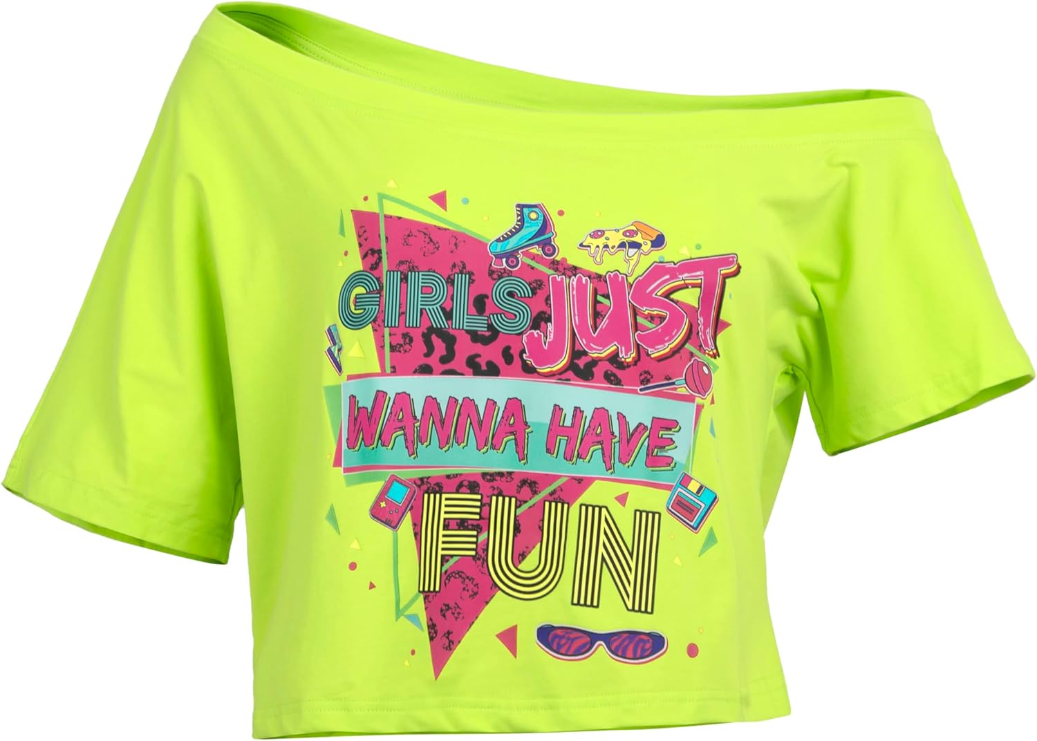 MNLYBABY 80s Outfit for Women Retro 80's Off The Shoulder Crop Tops Vintage 80s 90s Party Disco Shirt