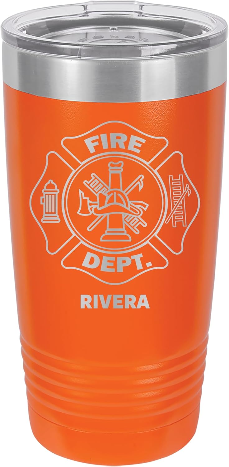 Personalized FIREFIGHTER, FIREMAN Appreciation Gift - Laser Engraved 20 oz. Polar Camel Suregrip Stainless Steel Tumbler, Drinkware, 13 Available Colors (Orange)