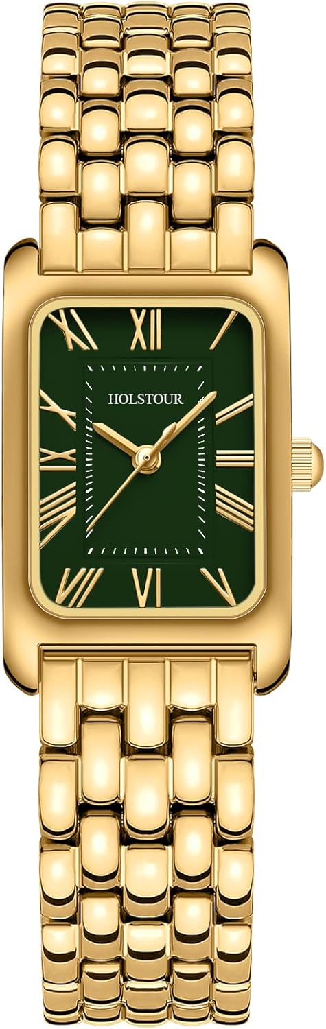 Gold Watches for Women Vintage Bracelet Roman Dial Rectangular Case Gold Watch Waterproof with Tools