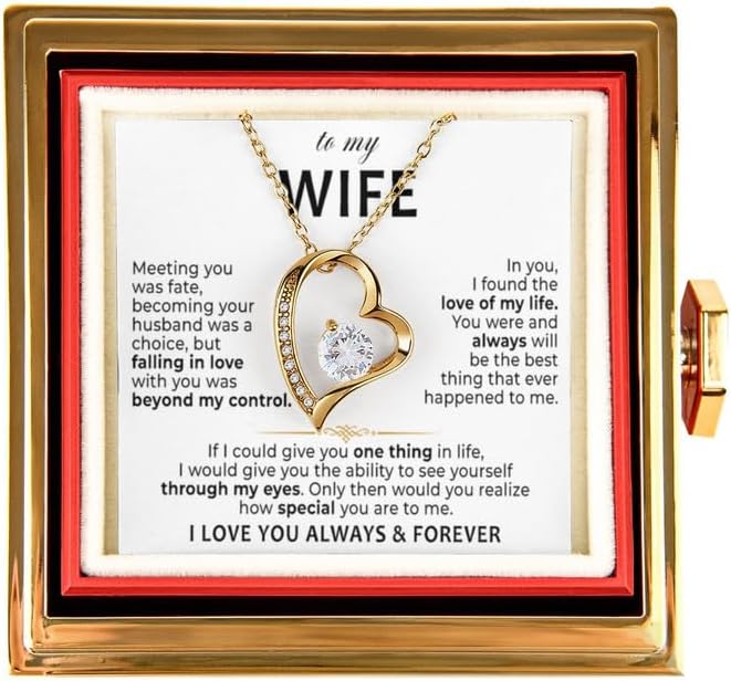 VIRAGIL Wife Necklace with Rotating Preserved Real Rose Box, To My Beautiful Wife Necklace From Husband, Jewelry Gift For Her Message Card, Birthday, Anniversary, Christmas Gifts