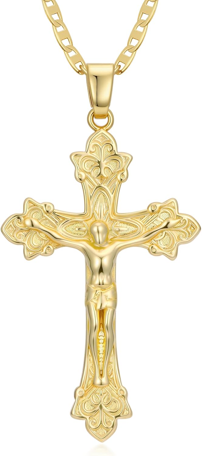 Gold Cross Necklace 14K Gold Crucifix Necklace Elegent Jesus Cross Pendant Religious Catholic Jewelry Gift for Women Men