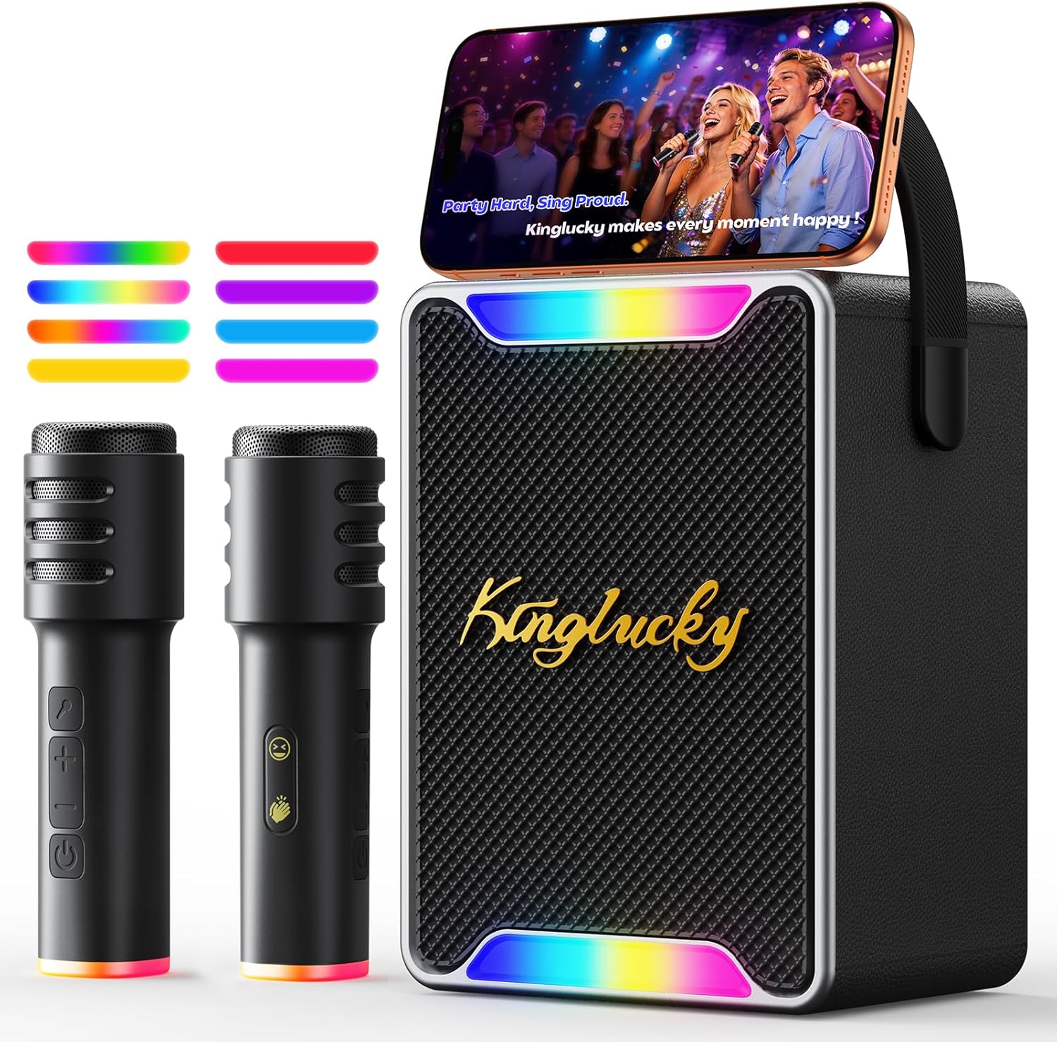 Kinglucky Karaoke Machine for Kids and Adults, 30W Portable Bluetooth Speaker with 2 Wireless Microphones, LED Lights/Voice Changer, PA System for Birthday Party, Gifts for Girls Boys 8-12, 3-8,