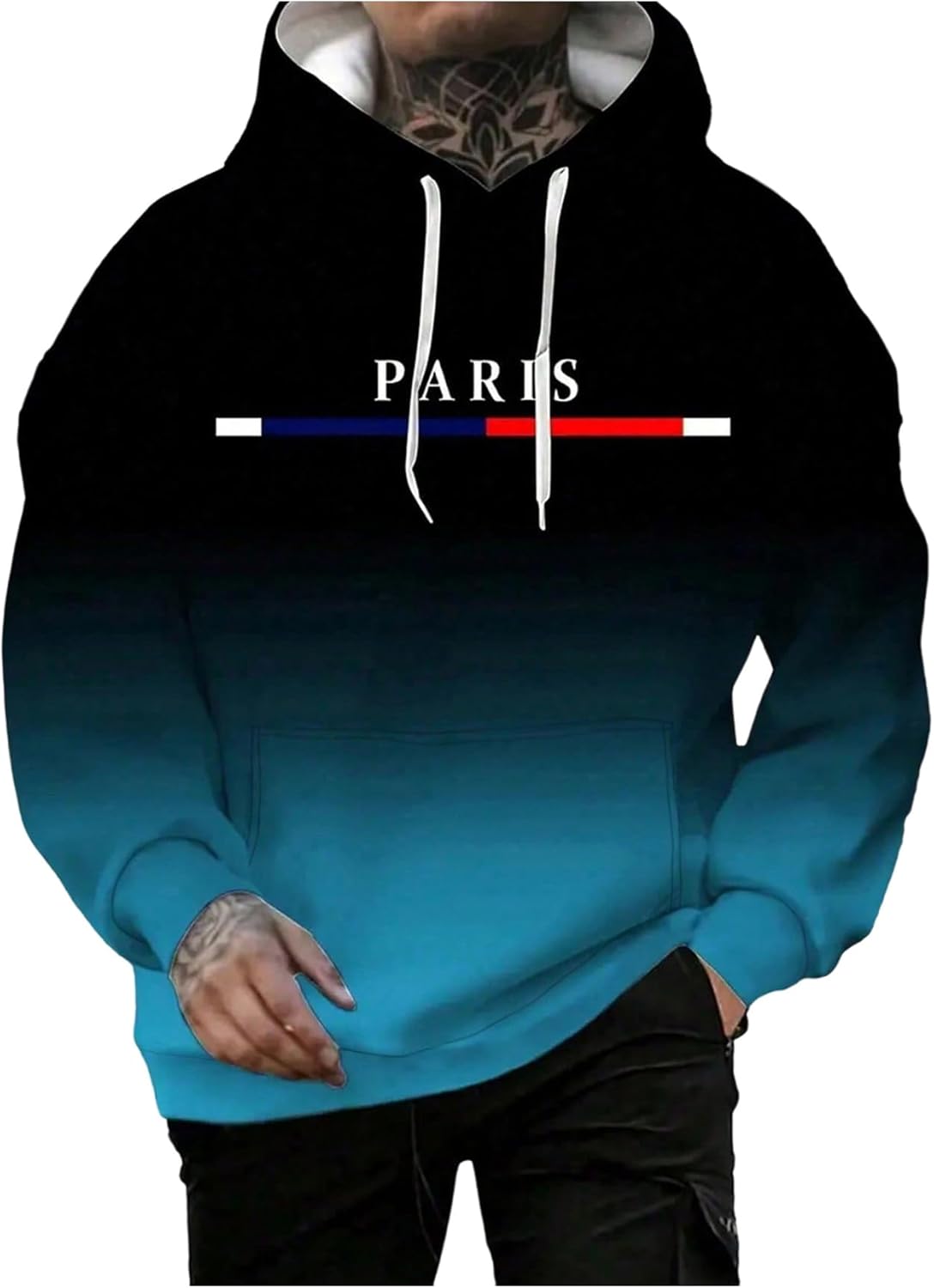 GORGLITTER Men's Letter Graphic Hoodies Y2K Oversized Ombre Fleece Lined Hooded Sweatshirt Pullover Top