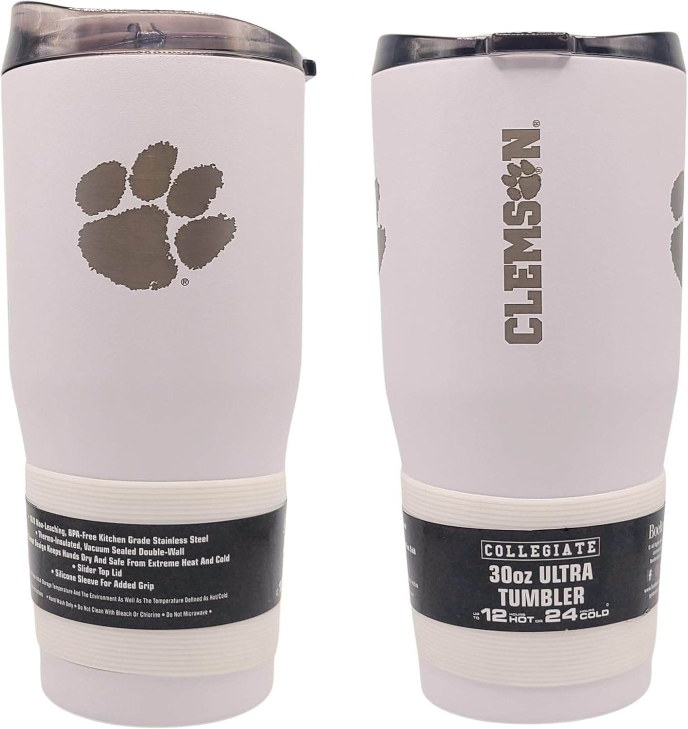 Boelter Brands NCAA Etched Logo White Premium Powder Coat Double Wall Stainless Steel 30oz Ultra Travel Tumbler (Clemson Tigers)