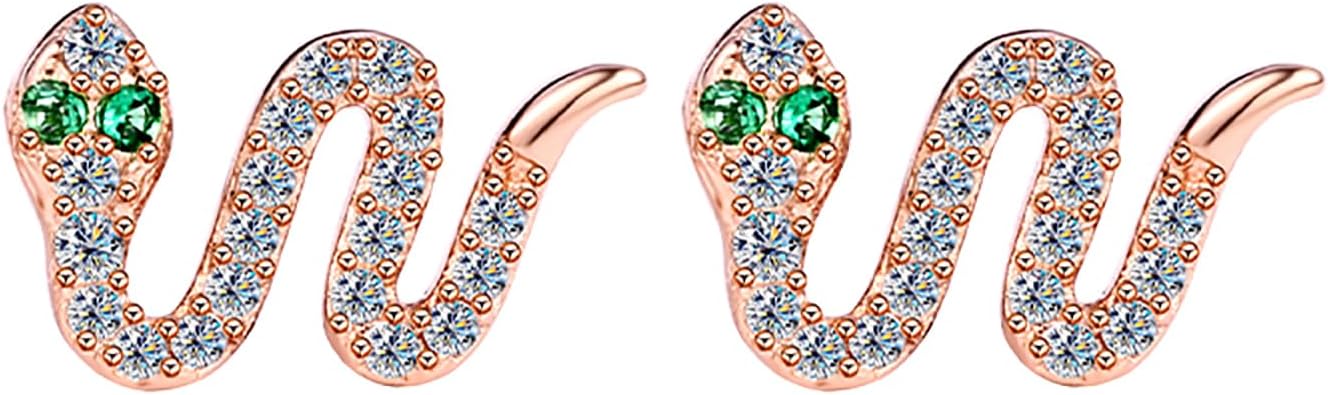 Dainty Rose Gold Snake Stud Earrings, 925 Sterling Silver Cubic Zirconia Hypoallergenic Earrings Trendy Cute Jewelry for Women