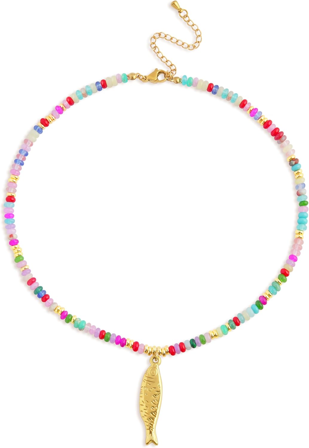 Boho Fish Necklace for Women, Colorful Natural Stone Beaded Fish Pendant Necklace, Summer Beach Jewelry Gifts for Swimwear & Vacation