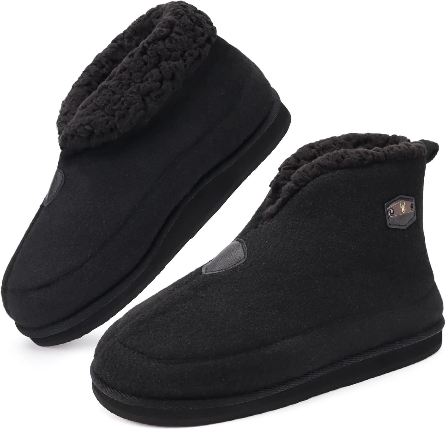 KuaiLu Mens House Slippers Booties Cozy Memory Foam Boots Warm Plush Lining Winter Felt Home Bedroom Slipper Socks Indoor Outdoor Non-Slip Shoes