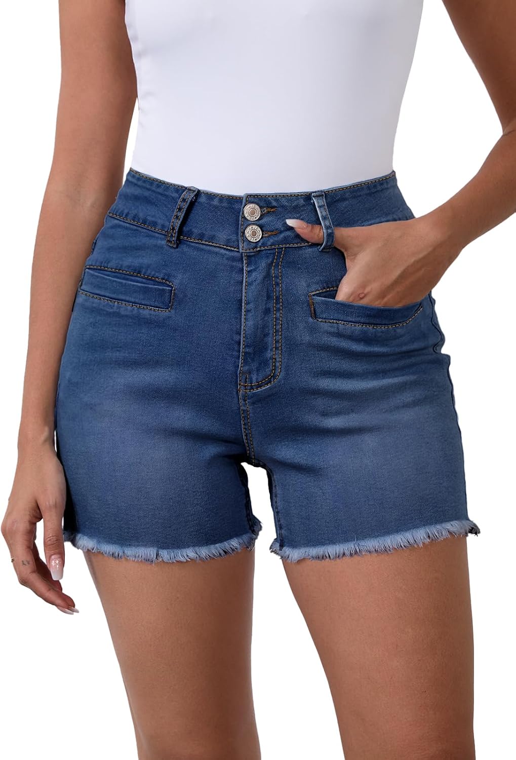 Metietila Women's High Waist Brushed Hem Denim Shorts Stretch Jean Shorts with Pockets for Women