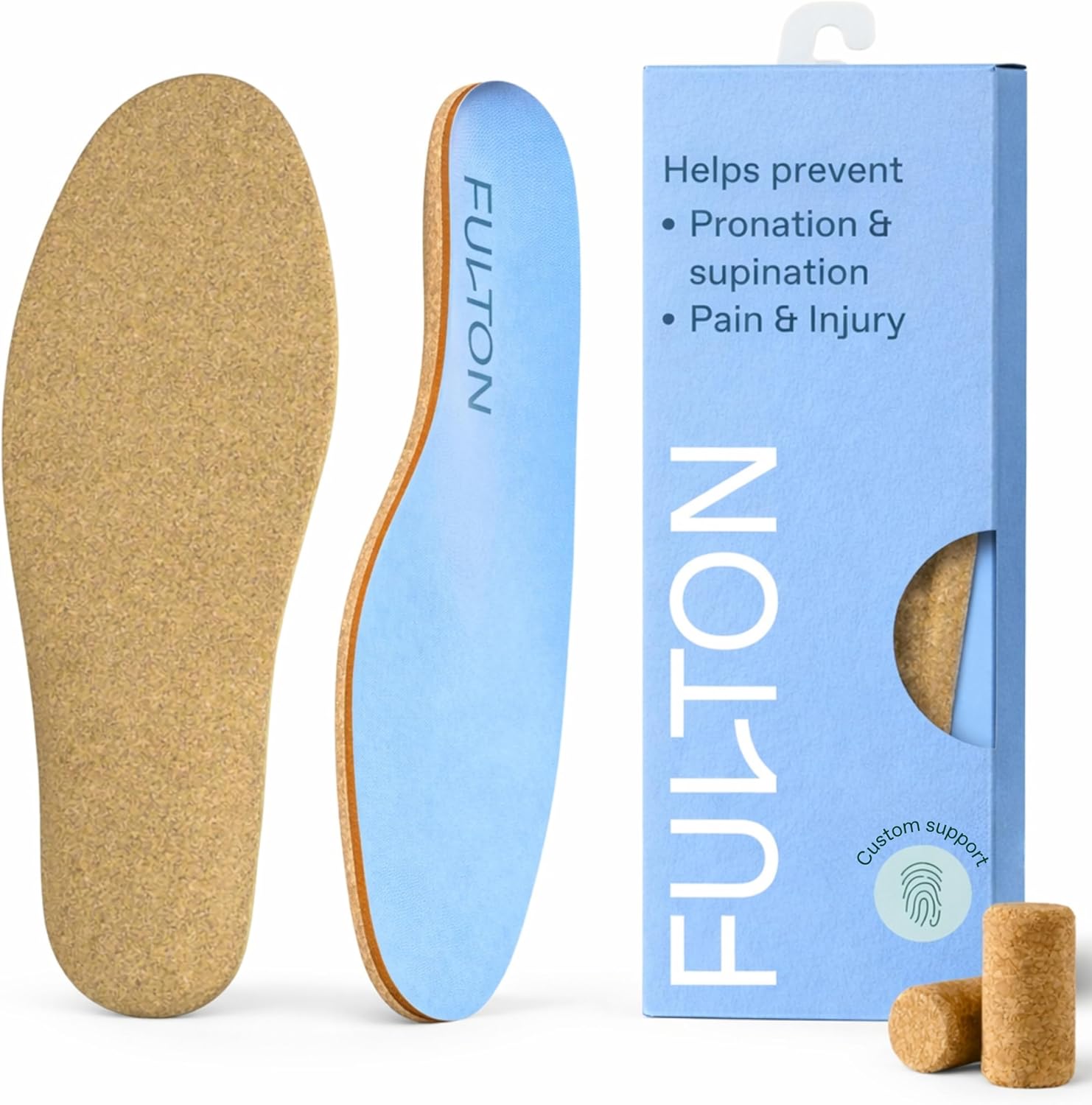 - CUSTOM ORTHOTICS FOR ALL ARCH TYPES - Whether you are looking for high arch support or flat feet support we got you covered! Fulton cork running shoe inserts for women conform to the shape of your foot giving a truly custom fit over time. Use for about 10 hours (or 30 miles) for the ideal fit!