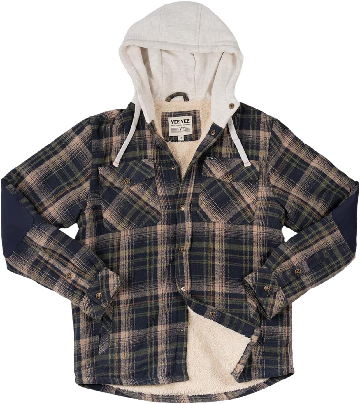 Yee Yee Apparel Overland Berber Flannel Jacket for Men - Hooded Flannel Jacket, Men’s Plaid Shacket with Fleece Lining