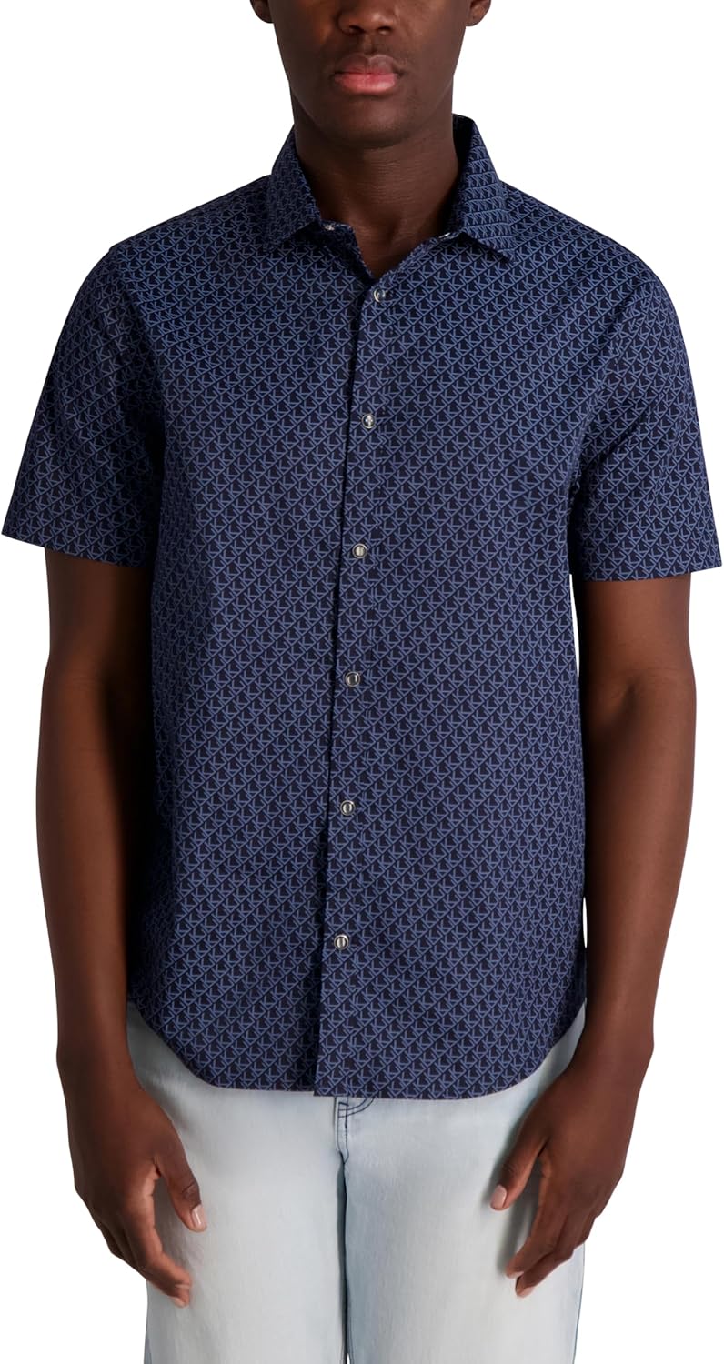 Karl Lagerfeld Mens Printed Short Sleeve Collared Shirt