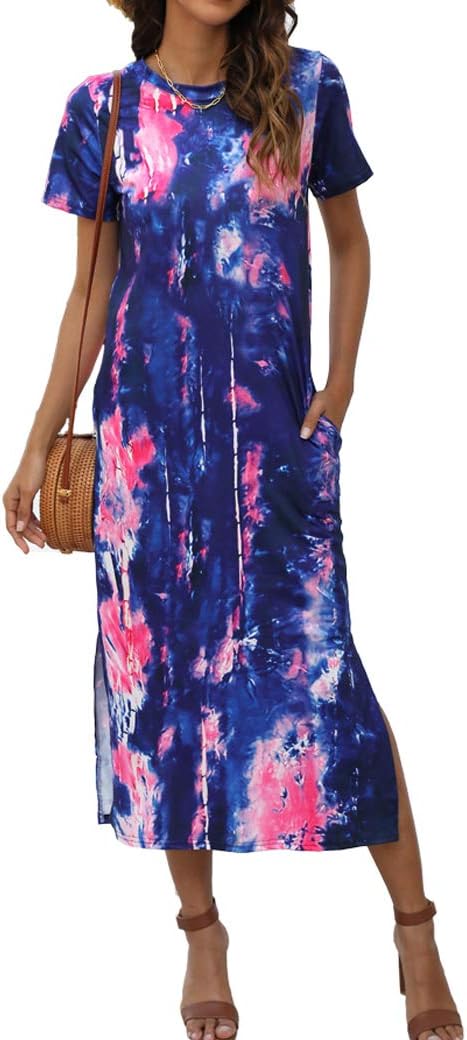 Naggoo Women's Summer Short Sleeve Maxi Dresses Casual Bobo Long Dresses with Pockets