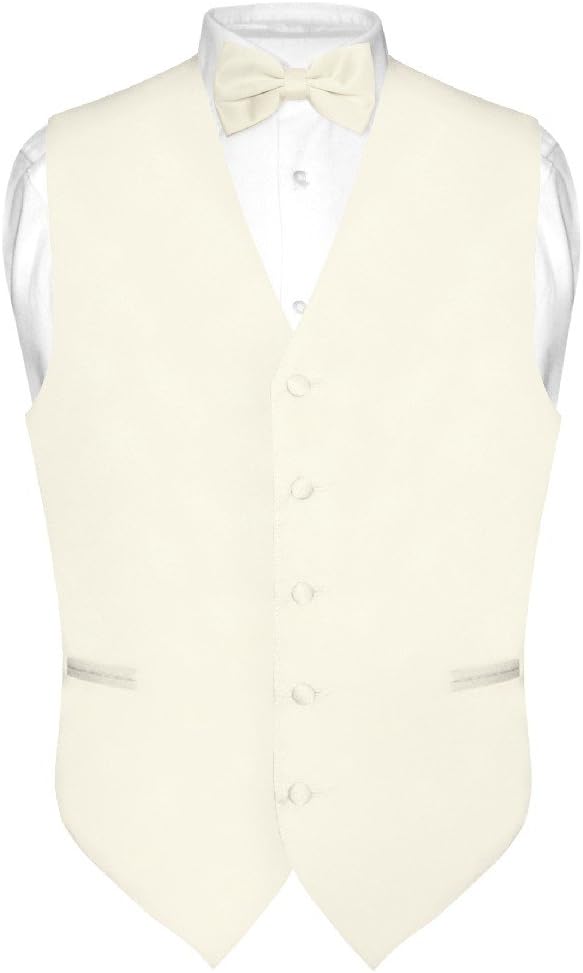 Vesuvio Napoli Men's Dress Vest & BowTie Solid CREAM Color Bow Tie Set for Suit or Tuxedo