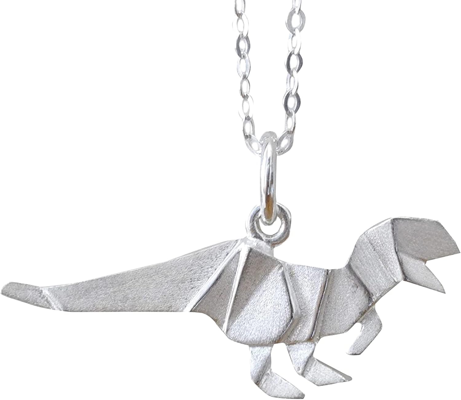 Origami Dinosaur T-Rex Necklace in Sterling Silver with 18" Chain
