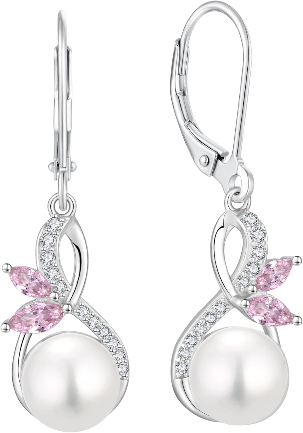 Pearl Earrings 925 Sterling Silver Infinity Butterfly Dangle & Drop Earrings for Women Leverback Earring with 10mm Freshwater Cultured Pearls Jewelry