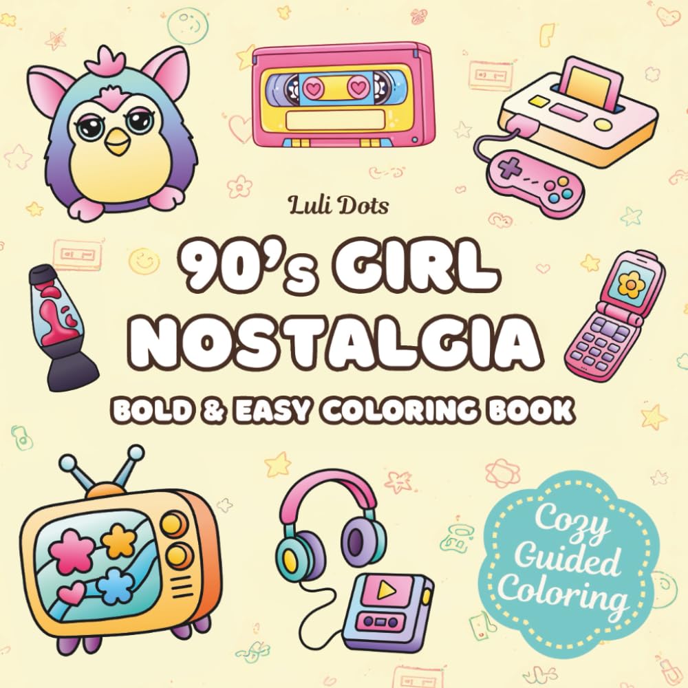 90s Girl Nostalgia: A Guided Coloring Book for Adults & Kids Featuring Bold & Easy Retro Pop Culture Icons for Stress Relief (Cozy Guided Coloring)