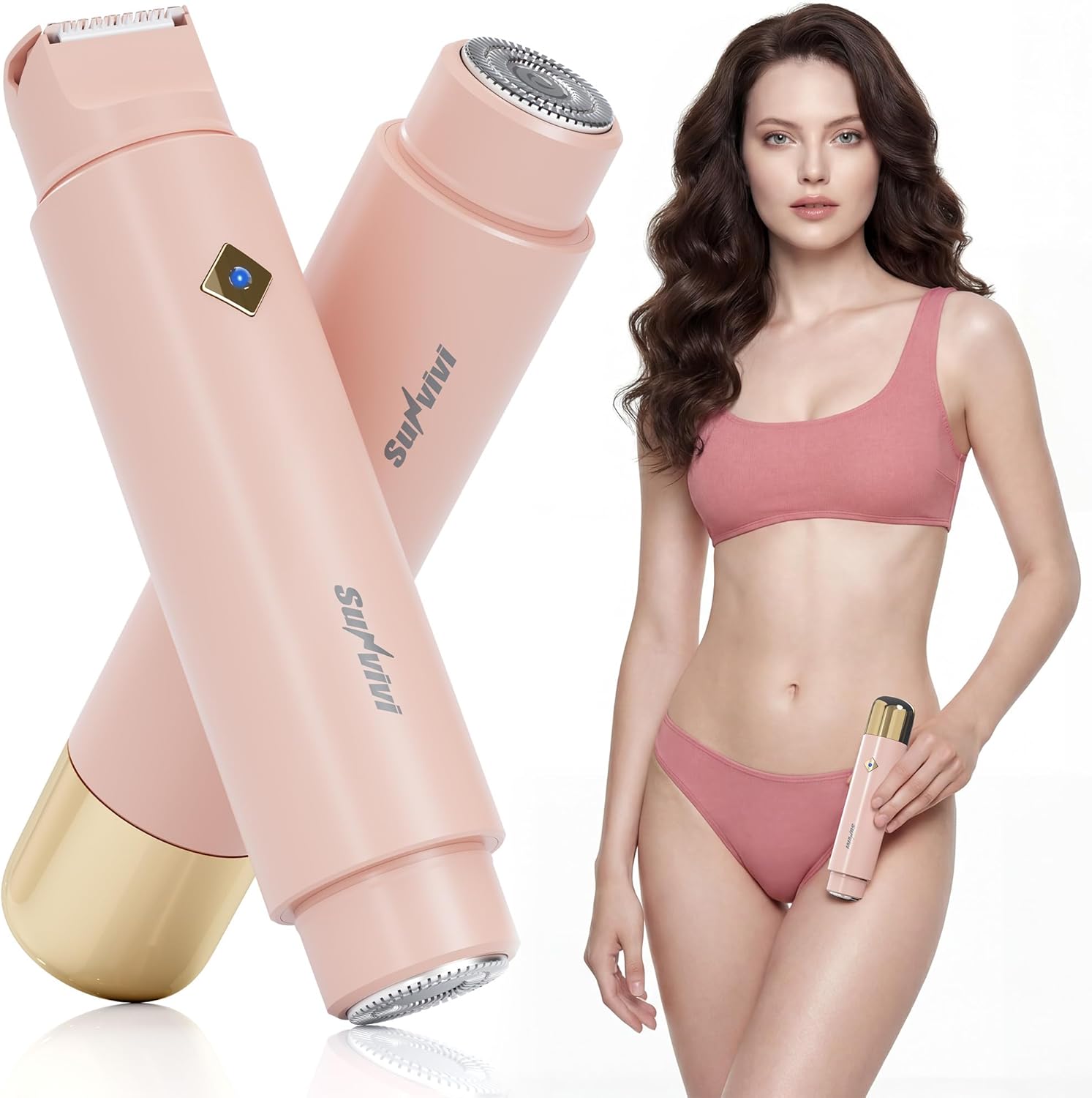 Sunvivi Bikini Trimmer for Women: IPX6 Waterproof Dual Head Pubic Razor, Painless Face Shaver Body Trimmer, Portable Hair Removal Kit for Bikini Underarm Leg Arm Body Face, Pink