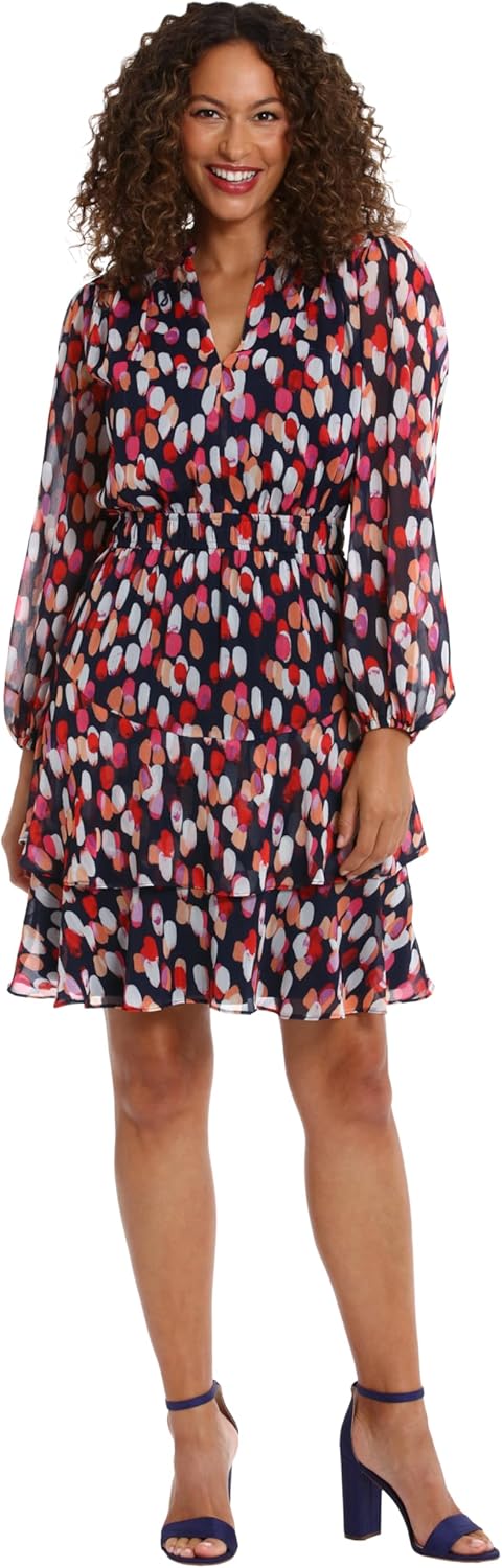 London Times Womens Elastic Waist Blouson Waist Bishop Sleeve Feminine Flattering Versatile Dress