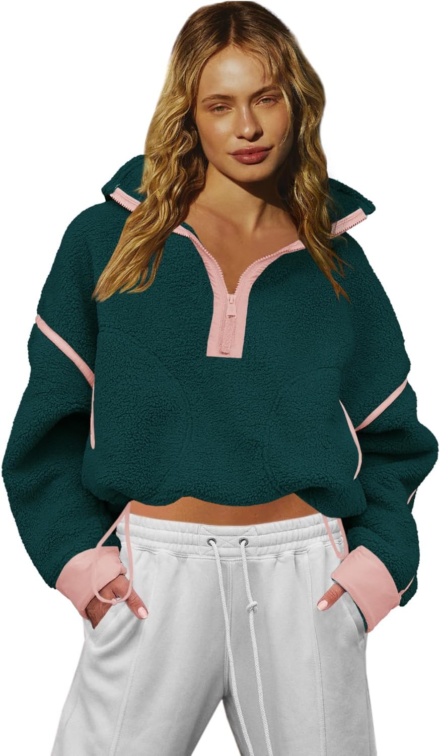 LAMISSCHE Half Zip Sweatshirt Women Oversized Sherpa Jacket V Neck Fleece Pullover Hoodie with Pockets