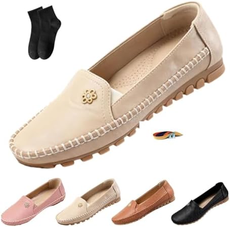 Orthopedic Shoes Leather,Stylish Orthopedic Leather Shoes - All-Day Comfort for Women,Lightweight Slip on Stitched Flat-Soled Casual with Flower