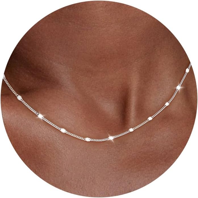 925 Sterling Silver Necklace Silver Chain Necklace for Women Cuban Link Chain 16K Gold Plated Chain Simple Dainty Necklace for Women Waterproof Trendy Jewelry Gift