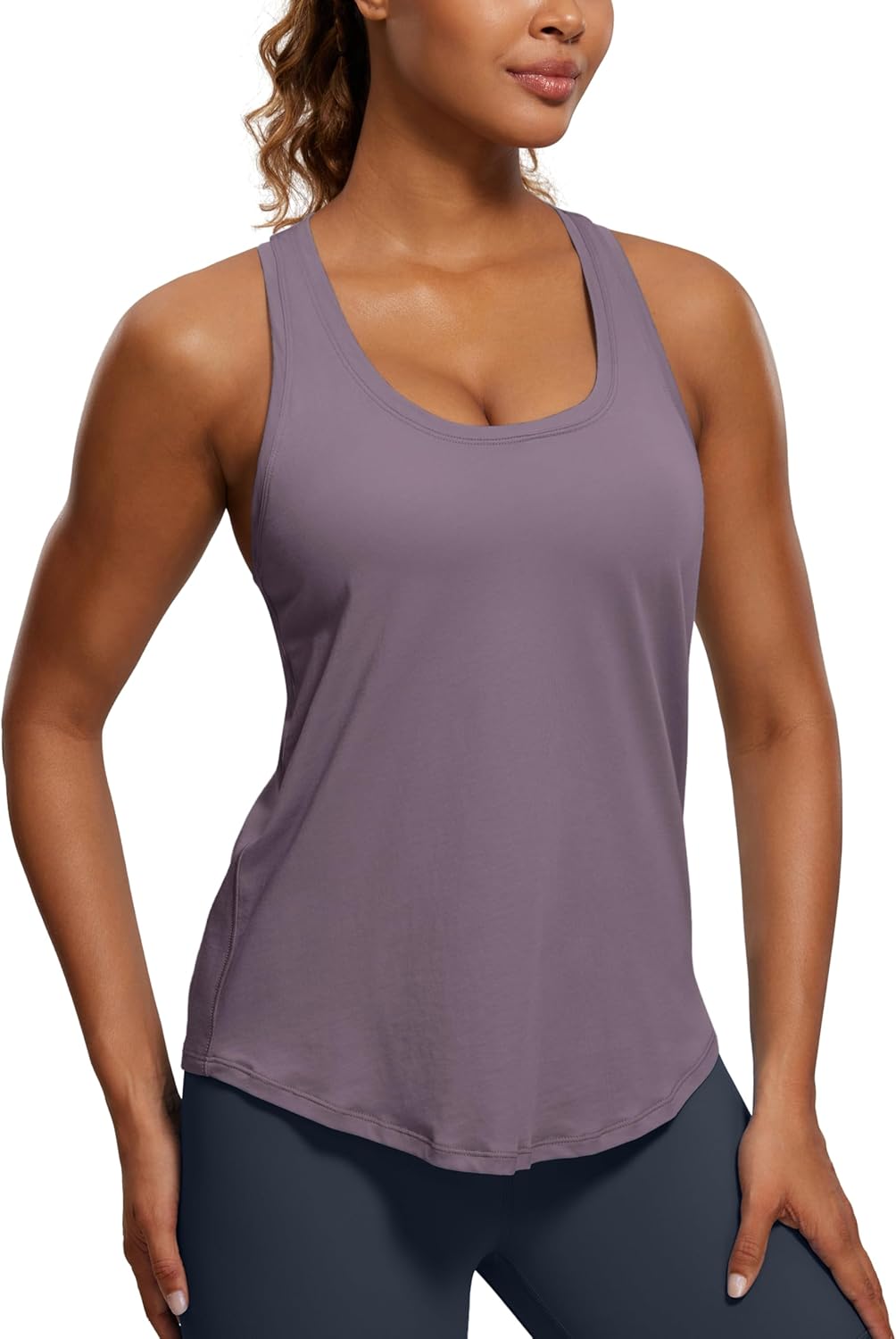 CRZ YOGA Pima Cotton Racerback Tank Tops for Women - Workout Athletic Casual Soft Scoop Neck Sleeveless Shirts