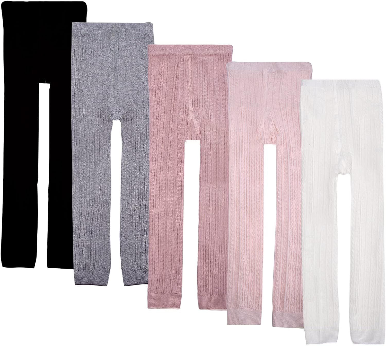 Looching 5 Pack Toddler Girls Cotton Cable Knit Leggings Classic Solid Footless Tights Ankle Length Pants for Kids
