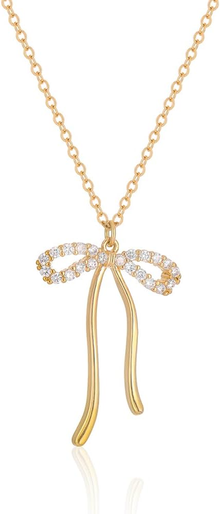 Bow Necklace Gold Necklace for Women, 14K Gold Plated Dainty Bow Pendant Trendy Necklaces for Women Gold Jewelry