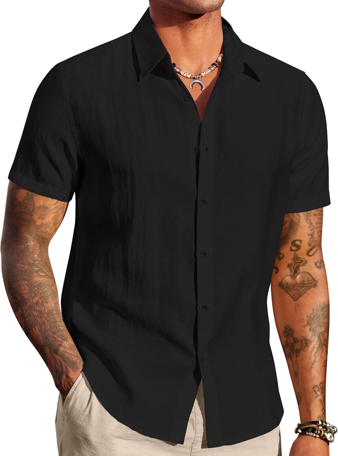 COOFANDY Men's Linen Shirts Short Sleeve Casual Button Down Shirts Beach Summer Wedding Tops