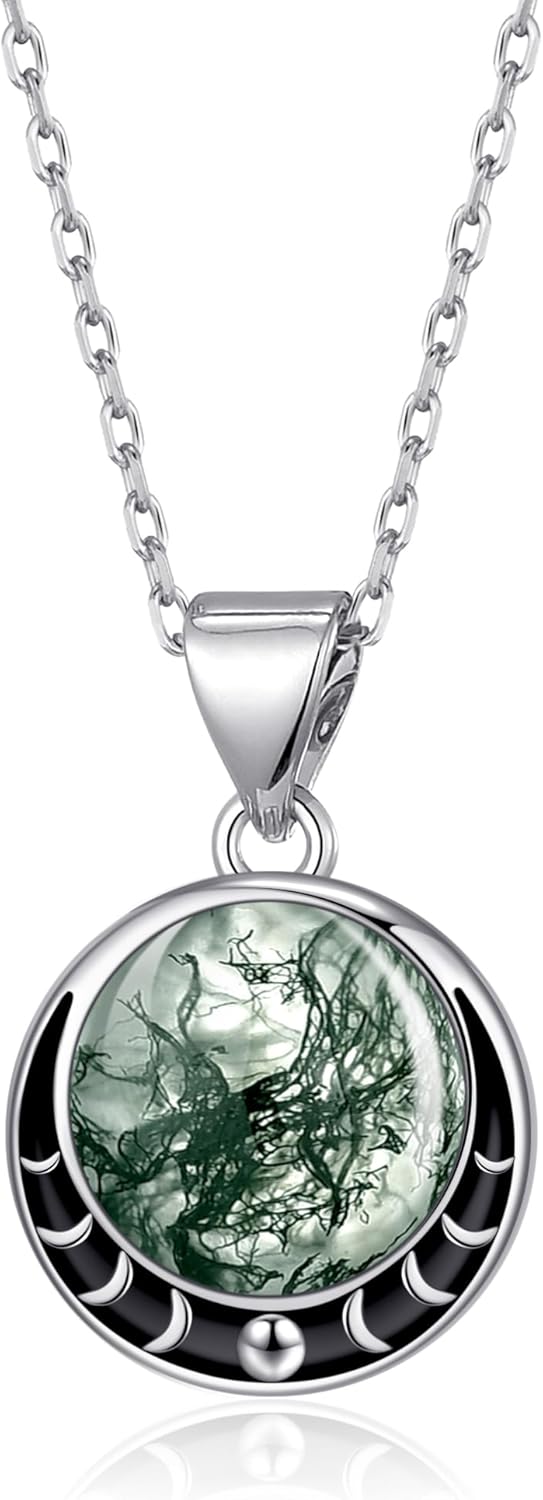 Moss Agate Necklace for Women Moon Phase Green Moss Agate Pendant Jewelry Gifts for Women Birthdayb Christmas