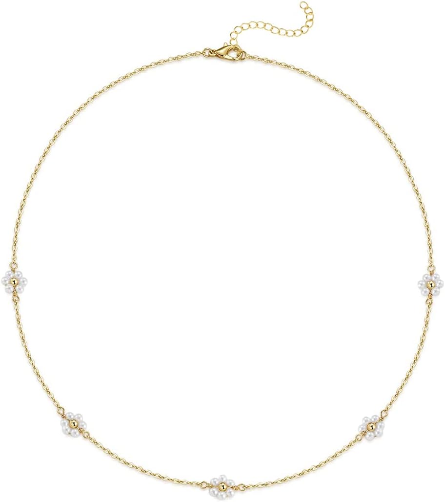 Daisy Flower Choker Necklace 14K Gold Plated Beaded Pearl Choker for Women Jewelry Gifts