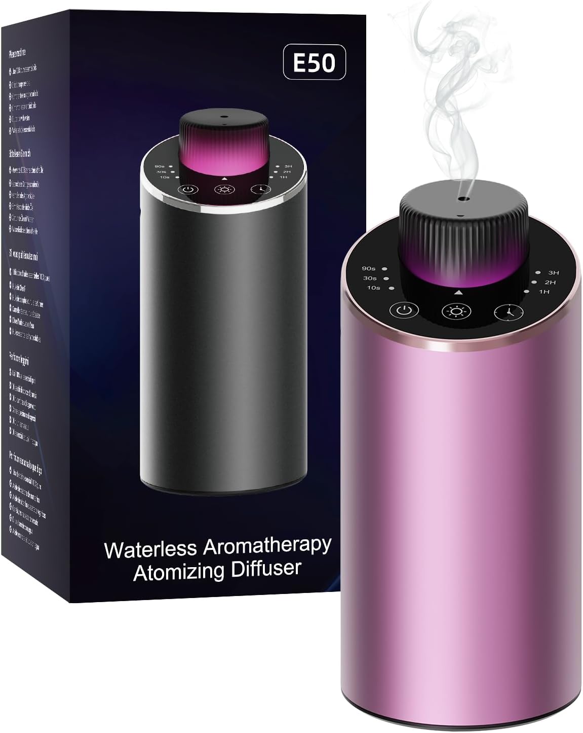 - 【Portable & Smart Touch Control】Smaller than a soda can, this waterless diffuser gives you complete control. Customize mist intervals (10/30/90s) and set auto-off timers (1/2/3H/ON) for any space. Precise settings prevent oil waste, saving you money, while the tip-over sensor automatically shuts it off to prevent leaks