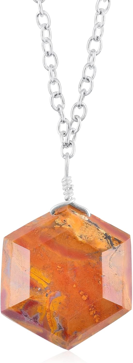 Natural Agate Crystals Pendant Necklace, Hexagon Cabochon Gemstone, Energy Healing Crystals, Birthday, Gift for Her, Gemstone Jewelry 18 inch AAA+ Quality (agate B)