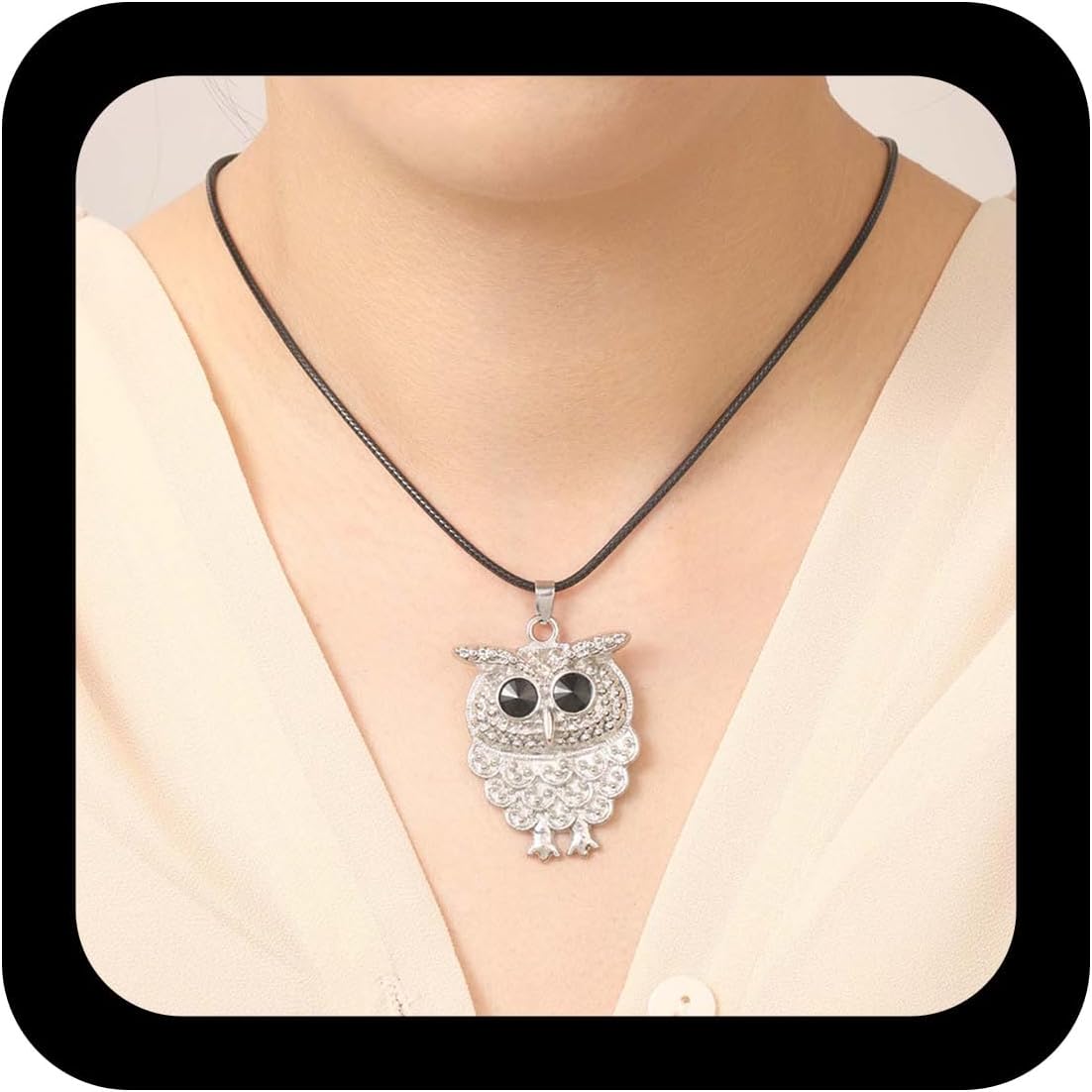 YienDoo Owl Necklaces Silver Vintage Owl Pendant Necklace Unique Animal Bird Pendant Owl Pendant Chain Necklace Black Rope Owl Necklaces Jewelry for Women