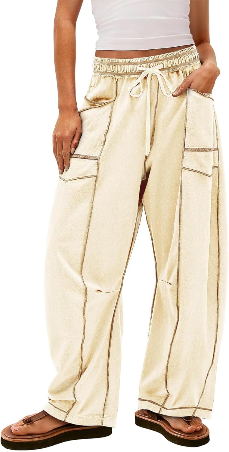Arssm Womens Baggy Wide Leg Pants Drawstring Barrel Pants Summer Casual Beach Lounge Trousers